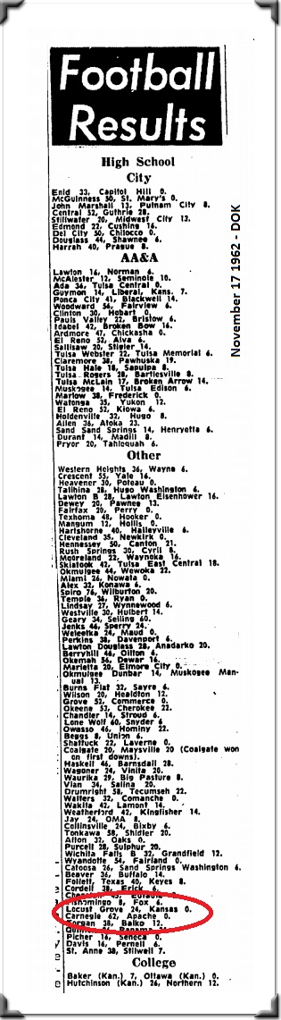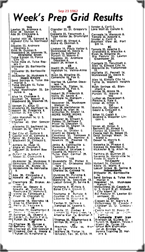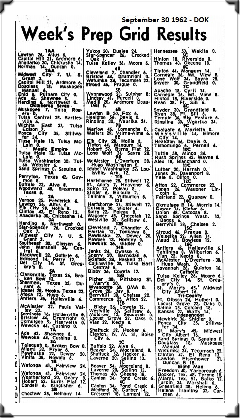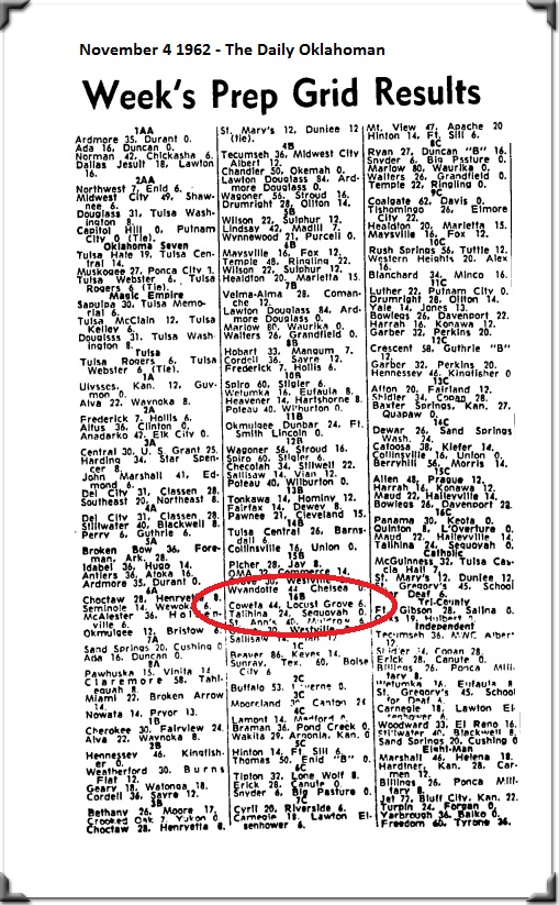 In the week of September 30 1962 Locust Grove handily blanks Oaks, Oklahoma,