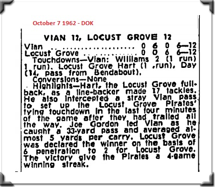 October 6 1962 Locust Grove tied Vian by a score