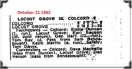 In the week of October 21 1962 Locust Grove defeated Colcord,