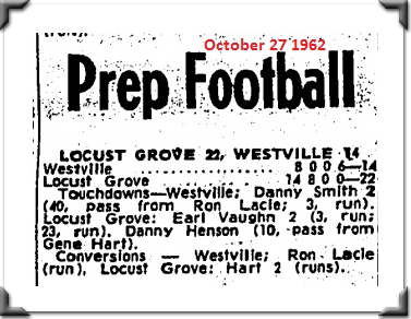 In the week of September 23 1962 Locust Grove beat nearby Salina,