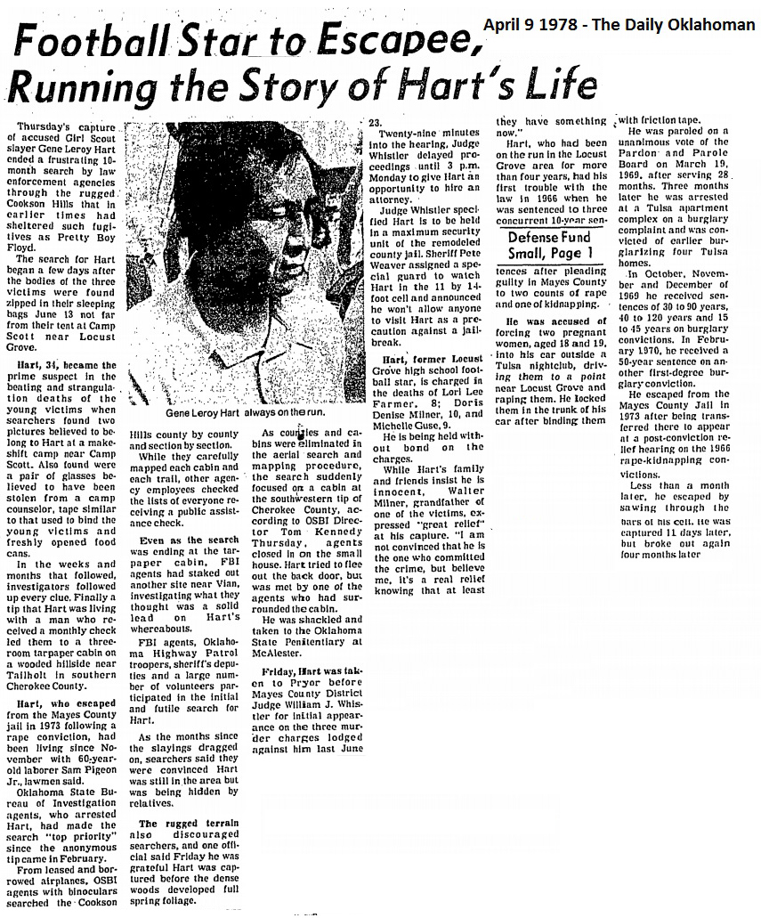 I have done some research on Hart's career as a football player for the Locust Grove Pirates. I could not find a whole lot to corroborate the claims of the newspapers in either the Daily Oklahoman (Oklahoma City) or the Tulsa World or Tulsa Tribune. The Daily Oklahoman reported much more about high school football and they gave some information where Hart is mentioned. At the same time, I can not find any articles that go along with the long standing rumors that Hart was an All State Football player or that Gene Hart was recruited by Division 1 college football teams.