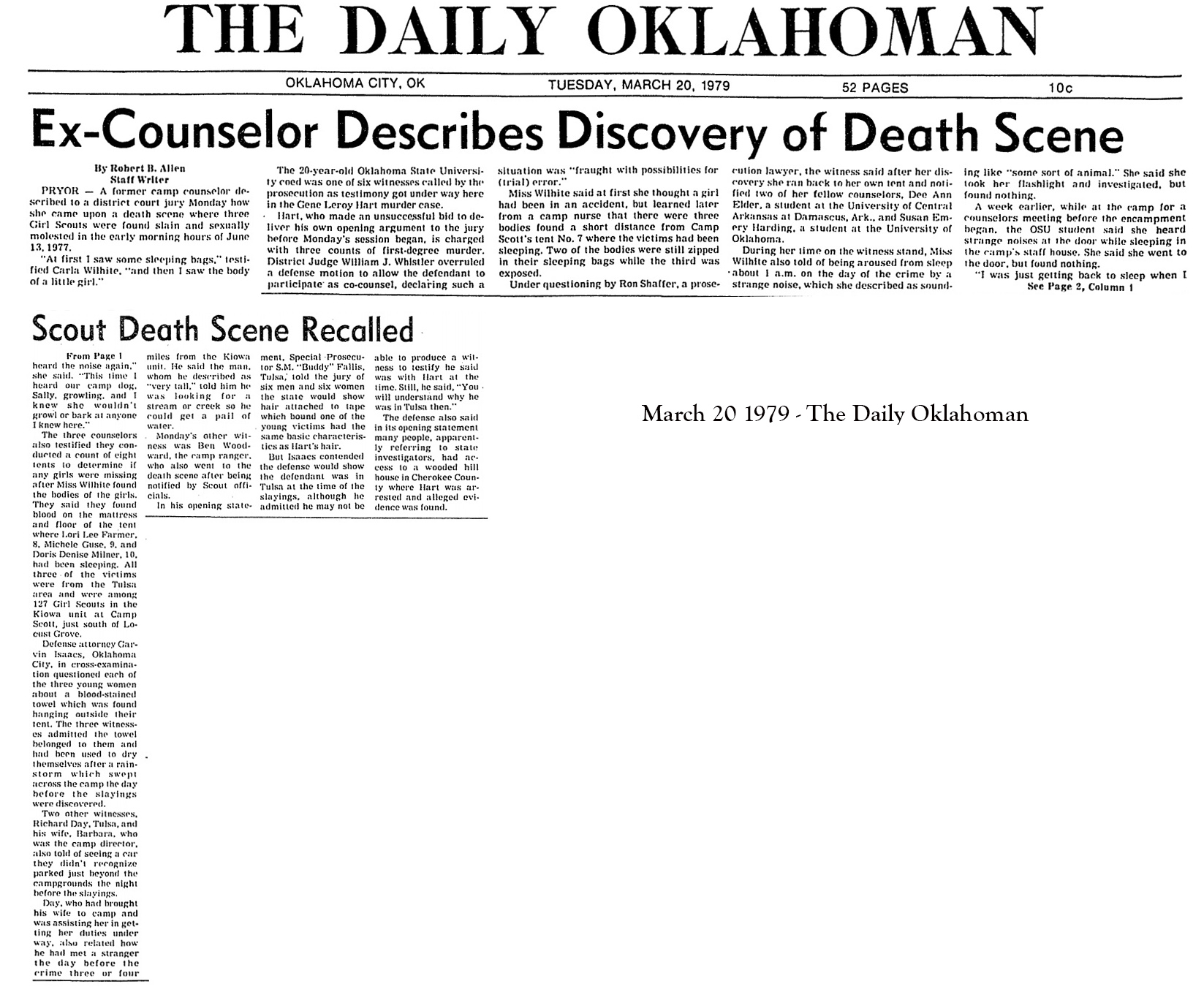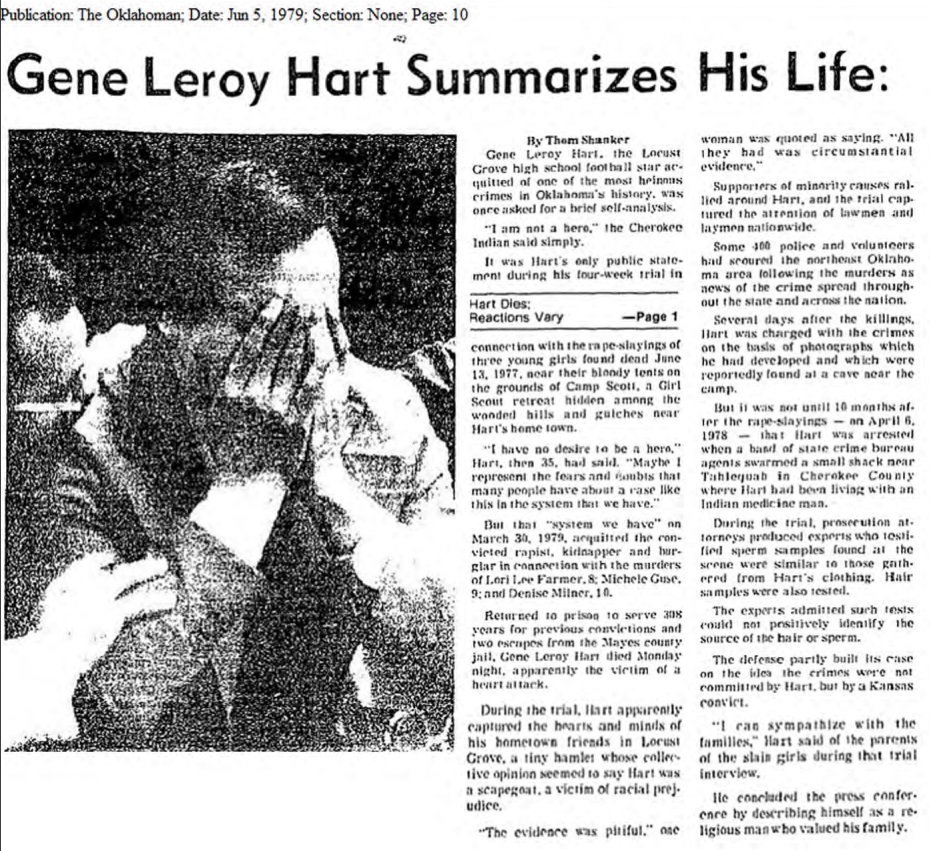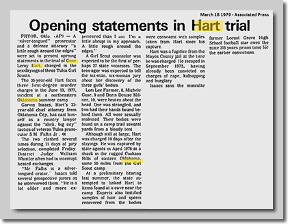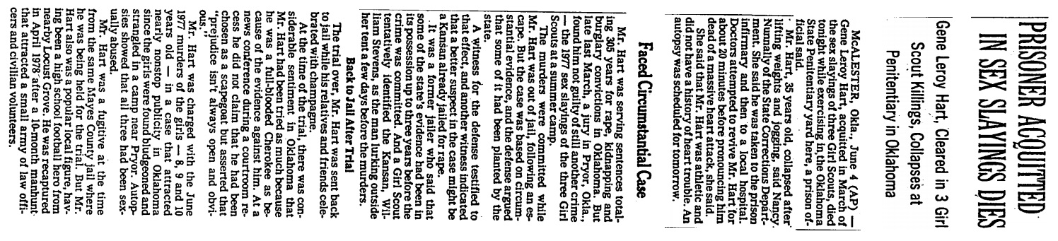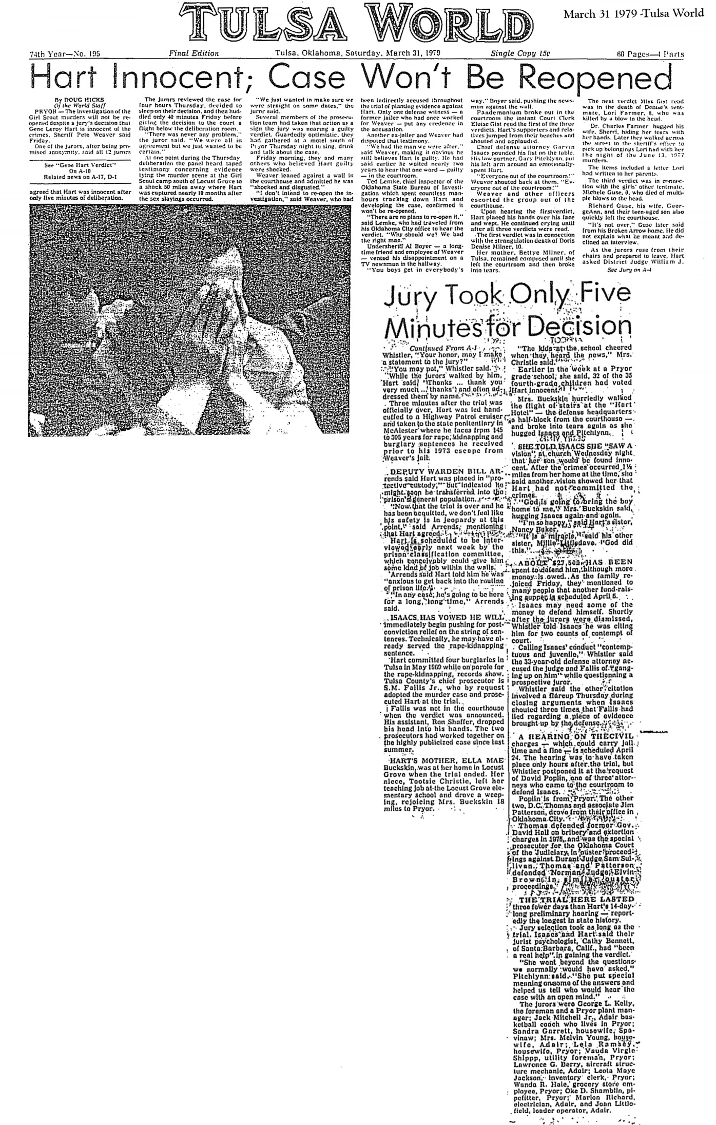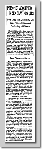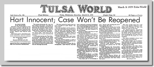 Tulsa World Headline - "Hart Innocent" - The article goes on to report that the jury made their decision in only 5 minutes,