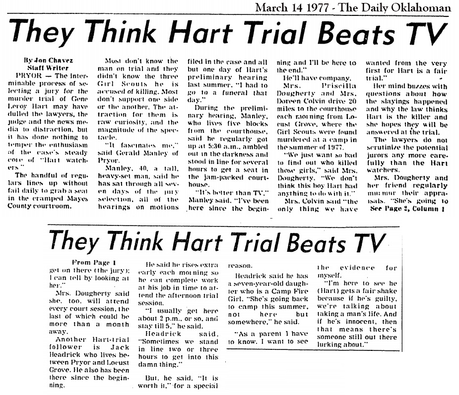 Article details the numerous and interested attendees at jury selection. This only increased at the trial. This article interviews Gerald Manley, who plays a role later in the story